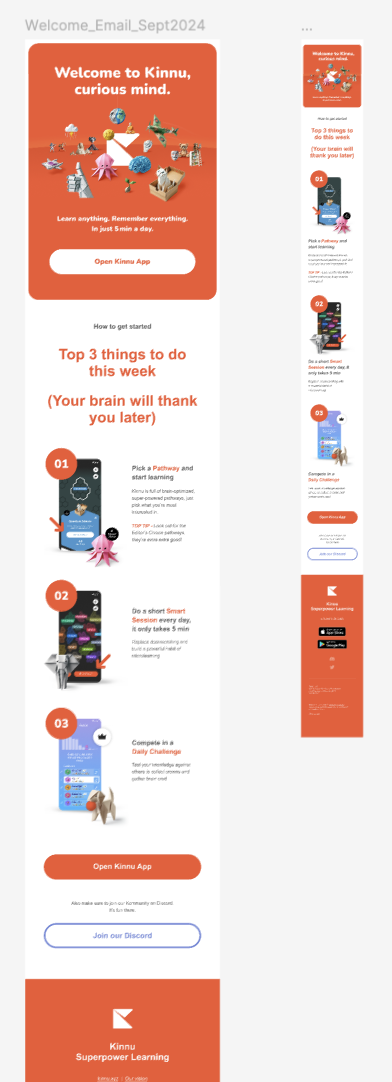 Kinnu is an EdTech on a mission to give everyone the power to learn anything they want to. I've worked here as a multi-disciplined designer across brand, product and marketing (including CRM). I’ve outlined my responsibilities below with example screenshots…